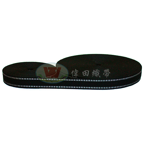 平紋安全帶 38mm*1.4mm厚 兩邊間銀光白色,易於夜間分辨物件且增加美觀. 用於童車,手袋,箱包,背包,服裝輔料,運動產品等.